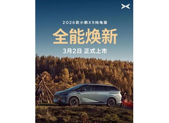 CLTC純電續(xù)航750km,2026款小鵬X9純電版將于3月2日上市