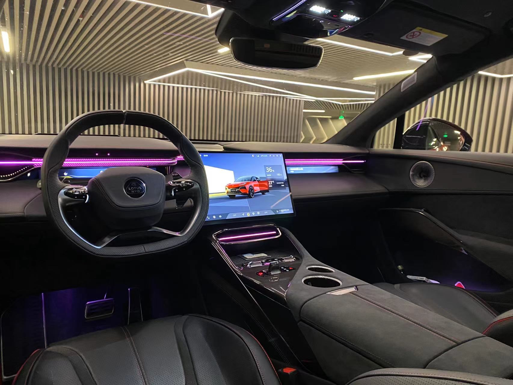 打開(kāi)無(wú)邊框車門(mén)進(jìn)入內(nèi)飾,路特斯Eletre可以說(shuō)很好的詮釋了什么叫運(yùn)動(dòng)與科技感的碰撞,車內(nèi)大量采用了Alcantara與碳纖維的包裹,讓筆者充滿駕駛的欲望。