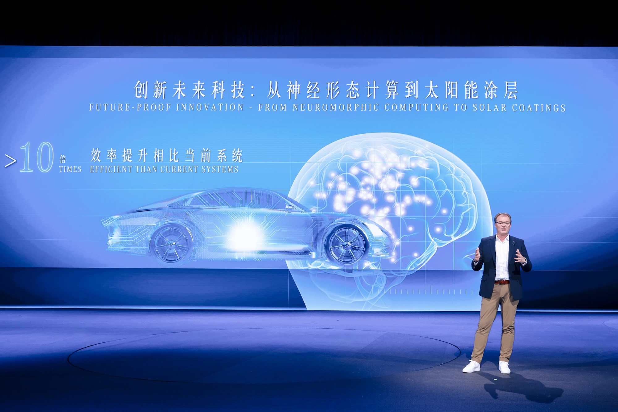 能效領(lǐng)域,梅賽德斯-奔馳呈現(xiàn)800伏電氣架構(gòu)、兩擋變速箱等能效科技,這些科技也將在未來的奔馳電動車型上搭載。有別于傳統(tǒng)機械制動的In-drive制動系統(tǒng),可以通過電驅(qū)系統(tǒng)實現(xiàn)制動,令能量回收和制動體感更舒適,也能幾乎無磨損、終身免維護。涂層僅5微米厚的新型太陽能涂層組件,在11平方米的面積(相當于一輛中型SUV的表面積)下,在北京的光照條件下每年可產(chǎn)生長達14000公里的續(xù)航。智能化時代,算力成為了電動車的另一大耗電來源,而神經(jīng)形態(tài)計算有可能將自動駕駛中數(shù)據(jù)處理所需的能耗減少90%,VISION EQXX能效概念車則是全球首款應(yīng)用神經(jīng)形態(tài)計算的可合法上路車輛。
