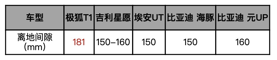 車型極狐T1吉利星愿埃安UT比亞迪 海豚 比亞迪 元UP離地間隙(mm)181150-160150150160
